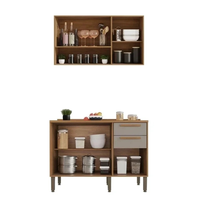 Balcão Flórida 3 Portas 2 Gavetas Larg. 1.20m + Armário Aéreo Florida 2 Portas Larg. 1.20m Ripado Cinamomo/Off – Sallêto