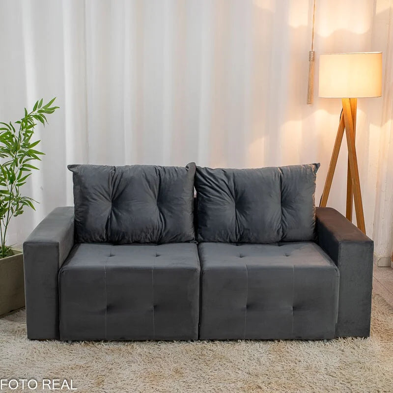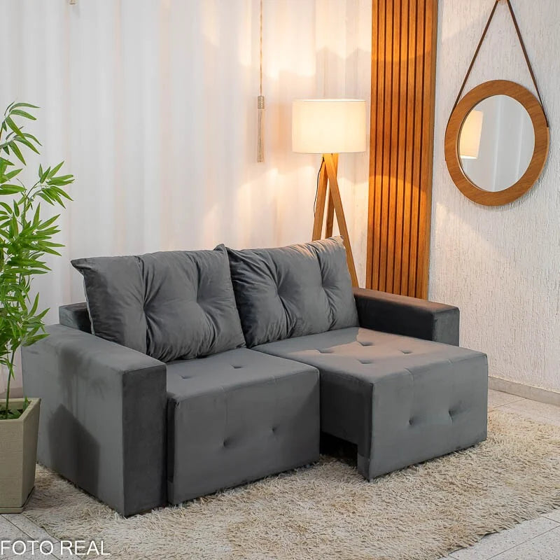 Sofá Retrátil Havaí 1.80m Veludo Cinza – Sem Caixa