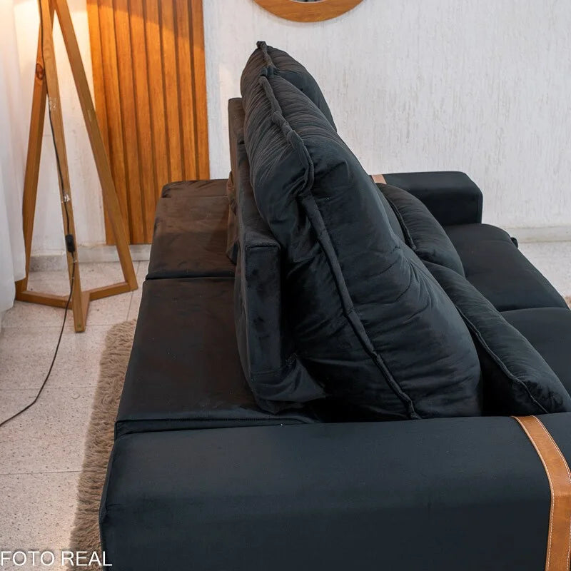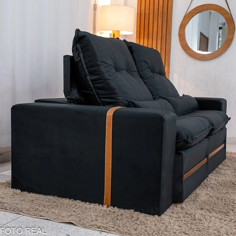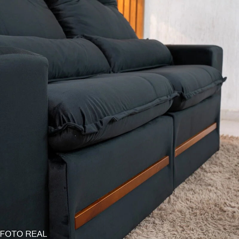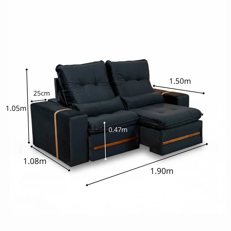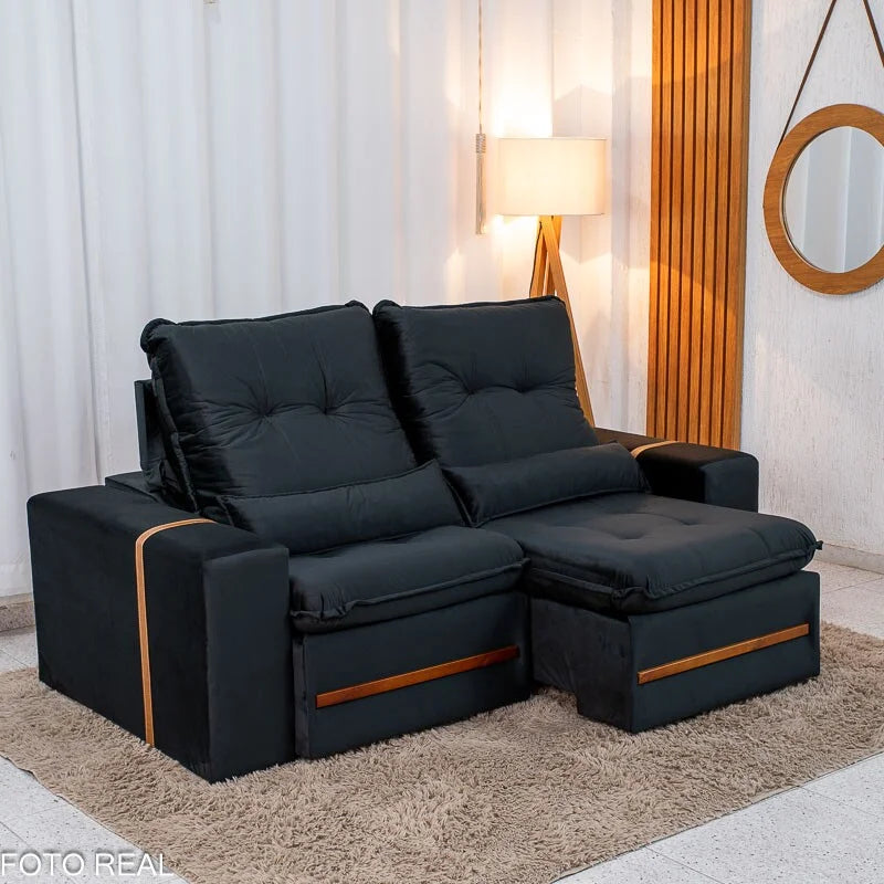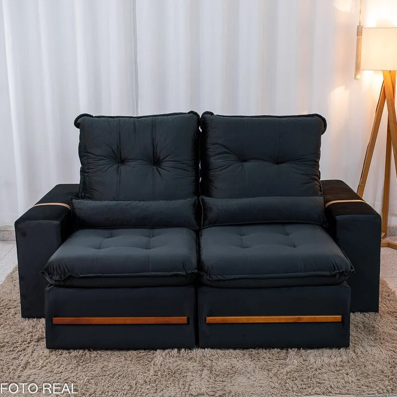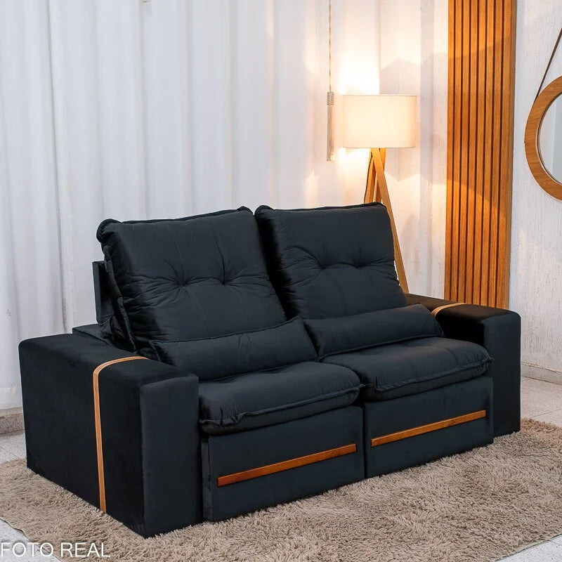 Sofá Retrátil Reclinável Montreal 1.90m Veludo Preto – D33