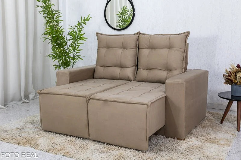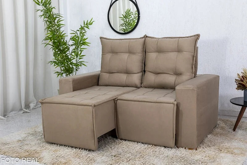 Sofá Retrátil Reclinável Rafaela 1.40m Veludinho Bege B09